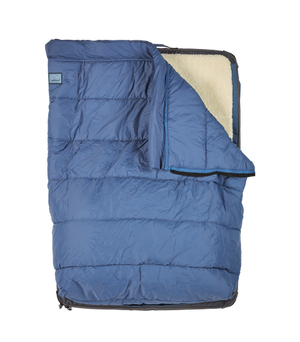 The blanket is convertible into a sleeping bag, complete with temperature-control vents.