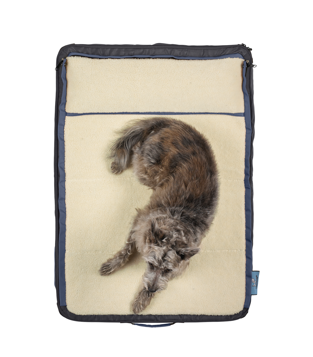 We strongly encourage travelers to pack efficiently for trips. Large, irregularly-shaped, and/or hard items (i.e., cans of dog food, big bones, large toys) not only puts stress on the organizer, but make the bed hard to roll up. This causes wear and tear on all of the components of the bed - the inner foams, the nylon, the fleece, and the compression straps and buckles.